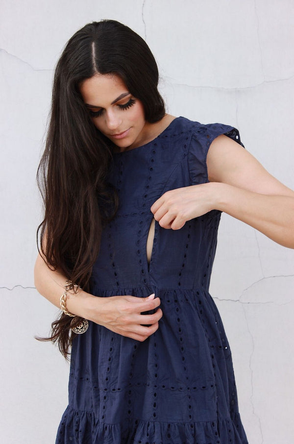 Navy Eyelet Marshall Maxi Dress Hyacinth House